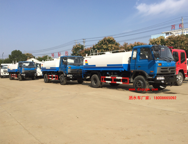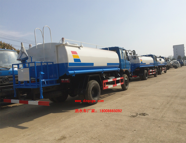 底盤說明:153豪華駕駛室,軸距4500mm或4700mm,4950mm,康機或玉柴國四發(fā)動機,大同6檔變速箱,5t前橋/10t后橋,10.00尼龍?zhí),車?50雙層。罐體有效容積:9.97立方米。帶免征。 專用功能:該多功能灑水車適合于各種路面的灑水、噴霧、降溫、除塵、沖洗塵埃臟物,亦可用于園林綠化、市政環(huán)衛(wèi)、路面養(yǎng)護及應急消防、運輸飲用水等。專用部分由罐體、水泵、球閥、輸水管道、灑水裝置等部件組成。水泵、取力箱、球閥均為國家定型產(chǎn)品,具有性能良好,工作可靠、壓力高、流量大、油耗低等特點。 改裝部分:標配前沖、后灑、側(cè)噴、工作平臺、綠化高炮、自流閥、消防接口,輸水管3米2根,8噸以上罐體帶高位花灑2個,億豐泵或金龍泵,控制方式為手動。選裝氣動閥門控制;高位花灑,大鴨嘴,藥盤,罐體側(cè)面加裝萬向可調(diào)節(jié)噴頭,罐體后部壓塵噴灑裝置,兩個圓警燈或長警燈,LED箭頭燈,泵可選裝威龍泵或農(nóng)藥噴霧裝置。 |