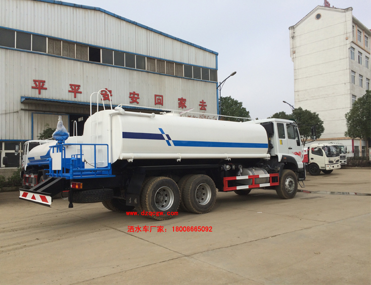 底盤說明:重汽斯太爾后雙橋底盤,重汽280馬力國五發(fā)動機(jī),HOWO 10檔變速箱,153前后橋,4350+1350mm軸距,11.00R20鋼絲胎,帶空調(diào),ABS.罐體有效容積:14.7立方米。 專用功能:該多功能灑水車適合于各種路面的灑水、噴霧、降溫、除塵、沖洗塵埃臟物,亦可用于園林綠化、市政環(huán)衛(wèi)、路面養(yǎng)護(hù)及應(yīng)急消防、運(yùn)輸飲用水等。專用部分由罐體、水泵、球閥、輸水管道、灑水裝置等部件組成。水泵、取力箱、球閥均為國家定型產(chǎn)品,具有性能良好,工作可靠、壓力高、流量大、油耗低等特點(diǎn)。 改裝部分:標(biāo)配前沖、后灑、側(cè)噴、工作平臺、綠化高炮、自流閥、消防接口,輸水管3米2根,8噸以上罐體帶高位花灑2個,億豐泵或金龍泵,控制方式為手動。選裝氣動閥門控制;高位花灑,大鴨嘴,藥盤,罐體側(cè)面加裝萬向可調(diào)節(jié)噴頭,罐體后部壓塵噴灑裝置,兩個圓警燈或長警燈,LED箭頭燈,泵可選裝威龍泵或農(nóng)藥噴霧裝置。 |